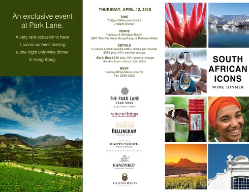 Hong Kong: South African Icons Wine dinner, Wine of the month (12 April)